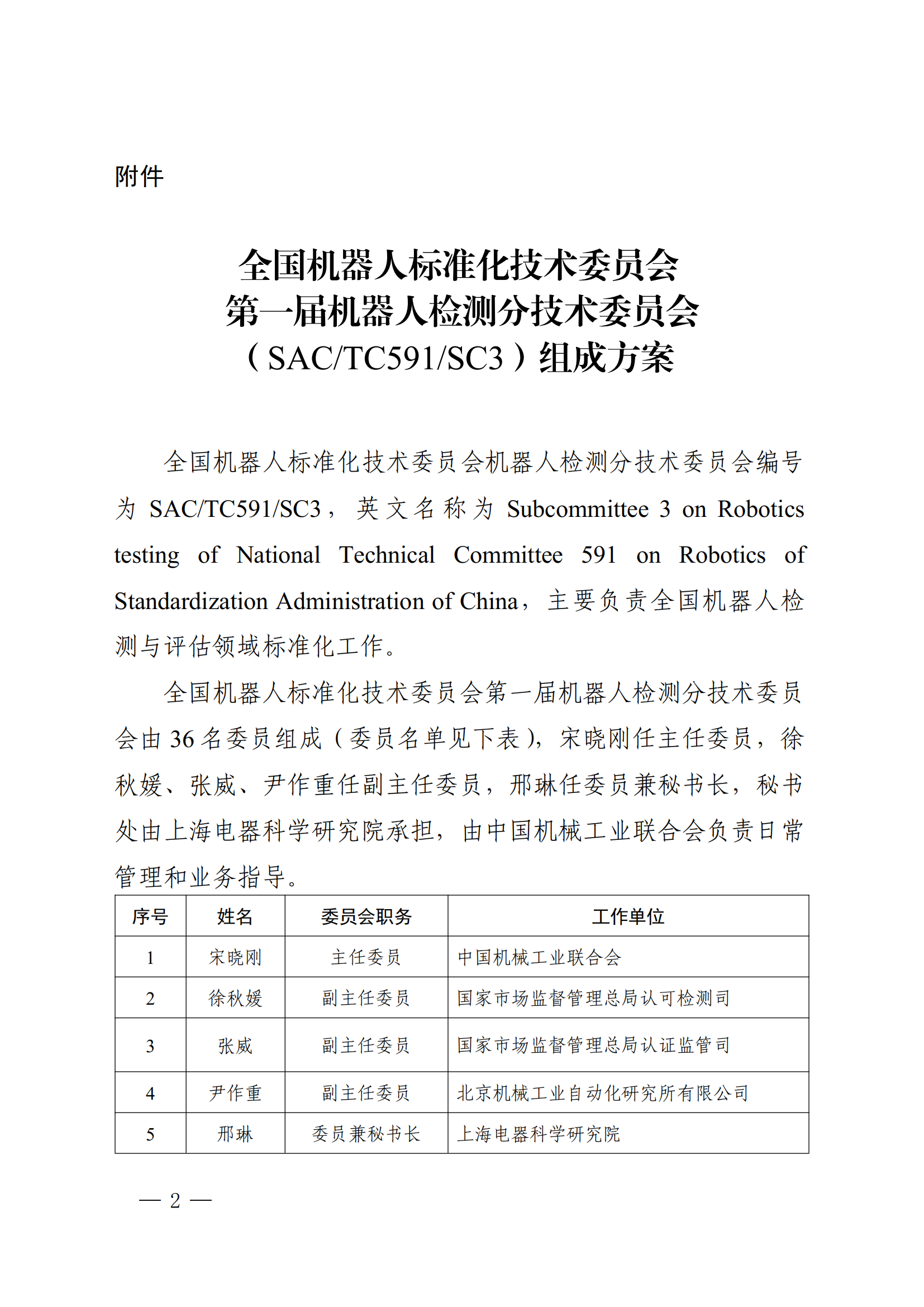 5月9日,国家标准化管理委员会发布《关于成立全国机器人标准化技术委员会机器人检测分技术委员会的公告》,决定成立全国机器人标准化技术委员会机器人检测分技术委员会(以下简称:分技术委员会),主要负责全国机器人检测与评估领域标准化工作,秘书处由上海电器科学z6com·尊龙(中国)时凯集团承担,我院专家邢琳任委员兼秘书长。