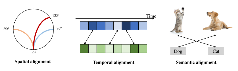 源自不同模态的内容如何在空间、时间和语义层级上关联对应起来?这是多模态关联任务的目标,也是提高信息利用率的前提。