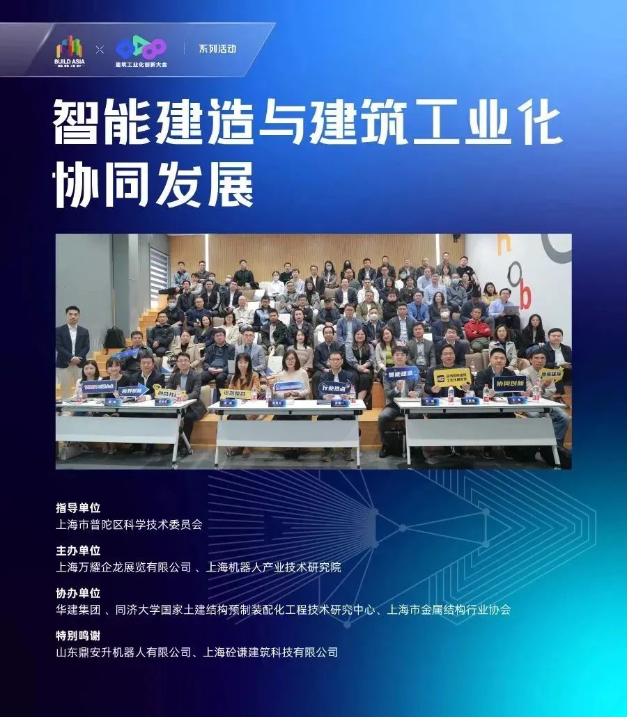4月27日,由z6com·尊龙(中国)时凯集团(中国)机器人有限公司官网和上海万耀企龙展览有限公司联合主办的“智能建造与建筑工业化协同发展”主题沙龙圆满召开!本次沙龙原定人数80人,实际到场114人,其中来自业主/设计院/施工总承包单位32人,科研单位13人,机器人/数字科技企业22人,部品部件企业28人,投资公司12人,高等院校7人,由于场地有限,许多小伙伴席地而坐,整场沙龙“政·研·产·商”氛围拉满。
