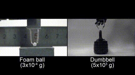 机器人抓手分别举起重量为 0.0003 g的泡沫球和5000g 的哑铃
